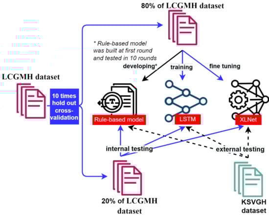 - Alsentzer, E.; Murphy, J.R.; Boag, W.; Weng, W.-H.; Jin, D.; Naumann, T.; McDermott, M. Publicly available clinical BERT embeddings. arXiv 2019, arXiv:1904.03323. [Google Scholar]