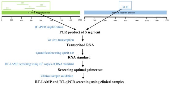 Genomic location and screening strategy of RT-LAMP primers for HTNV and SEOV. The location of each primer set is detailed in Table S1.