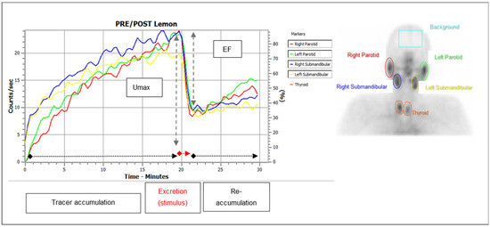 - Klutmann, S.; Bohuslavizki, K.H.; Kroger, S.; Bleckmann, C.; Brenner, W.; Mester, J.; Clausen, M. Quantitative salivary gland scintigraphy. J. Nucl. Med. Technol. 1999, 27, 20–26. [Google Scholar]