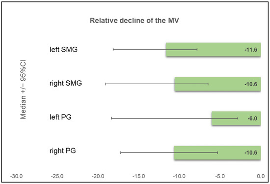 | left PG | 21.1 | 7.7 | 38.6 | 20.2 | 8.3 | 37.3 | n.s. | 37.1 | 22.7 | 60.6 | 33.8 | 17.4 | 59.5 | <0.001 |