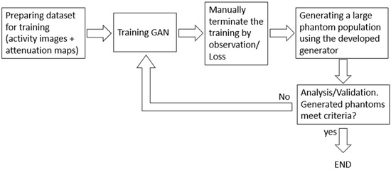 Flow chart—training a GAN for generating brain phantoms for SPECT research.