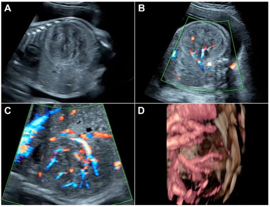 - Kütük, M.S.; Doğanay, S.; Özdemir, A.; Görkem, S.B.; Öztürk, A. Sonographic Diagnosis of Fetal Adrenal Hemorrhage Complicating a Vein of Galen Aneurysmal Malformation. Balk. Med. J. 2016, 33, 112–114. [Google Scholar] [CrossRef]