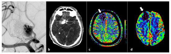 - Garcia, M.; Okell, T.; Gloor, M.; Chappell, M.; Jezzard, P.; Bieri, O.; Byrne, J. Feasibility of Flat Panel Detector CT in Perfusion Assessment of Brain Arteriovenous Malformations: Initial Clinical Experience. AJNR Am. J. Neuroradiol. 2017, 38, 735–739. [Google Scholar] [CrossRef] [PubMed]