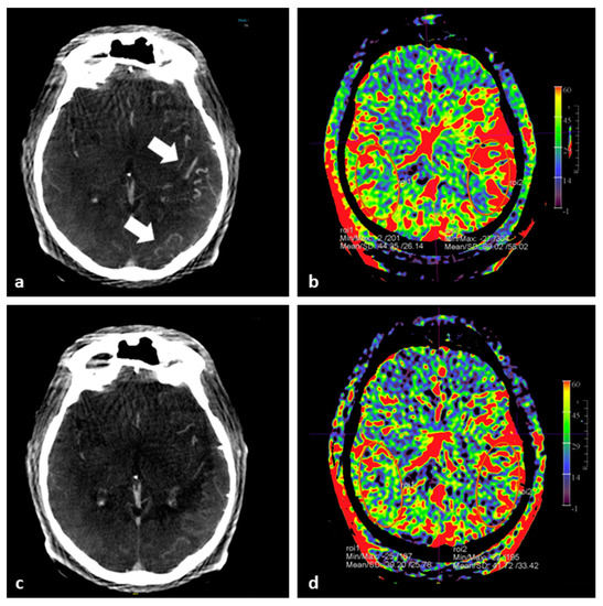 - Kamran, M.; Byrne, J.V. C-arm flat detector computed tomography parenchymal blood volume imaging: The nature of parenchymal blood volume parameter and the feasibility of parenchymal blood volume imaging in aneurysmal subarachnoid haemorrhage patients. Neuroradiology 2015, 57, 937–949. [Google Scholar] [CrossRef]
