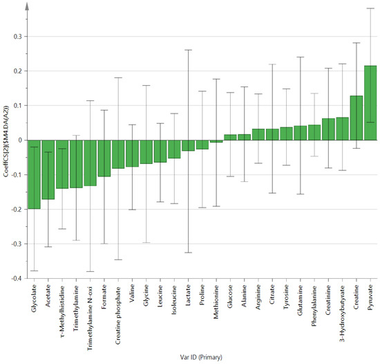 OPLS-DA coefficient plot of all metabolites in patients with ulcerative colitis.