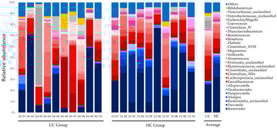 Gut microbiota composition at the genus level in UC and HC groups. UC, ulcerative colitis; HC, healthy control.