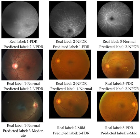 - Mateen, M.; Wen, J.; Hassan, M.; Nasrullah, N.; Sun, S.; Hayat, S. Automatic detection of diabetic retinopathy: A review on datasets, methods and evaluation metrics. IEEE Access 2020, 8, 48784–48811. [Google Scholar] [CrossRef]