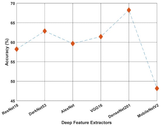 - Feature extraction was performed at the last fully connected, and global average pooling layers of DenseNet201, a deep network architecture, and the most discriminative features were selected with NCA.