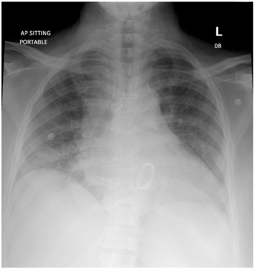 Chest X-ray showing bilateral airspace opacities and interstitial infiltrates representing pulmonary edema.