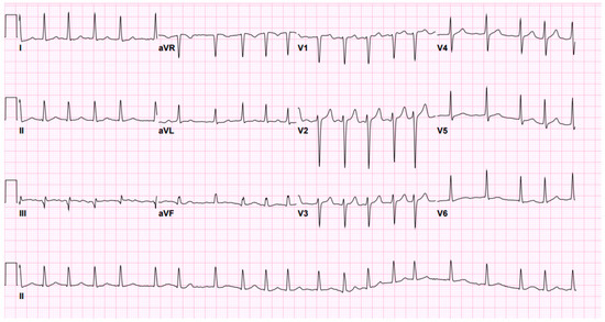 Salmonella species are gram-negative motile facultatively anaerobic bacilli that commonly cause self-limited gastroenteritis [1]. It is transmitted via the ingestion of contaminated food and water or rattlesnake meat or is acquired via the fecal–oral route [2]. Although commonly benign, Salmonellae are responsible for 600 deaths annually, and up to 10% of the cases develop bacteremia, particularly among infants, young children, the elderly, and immunocompromised individuals, affecting vital systems such as the nervous and cardiovascular systems [3,4]. Endocarditis is an exceedingly rare complication of Salmonella infection with an incidence of 0.2–0.4% [5]. It is a fulminant, destructive, and invasive infection that follows a highly complicated clinical course with possible life-threatening complications, such as conduction disturbances, valvular abscesses, perforation and/or rupture, and carries a high mortality rate that exceeds 45% [5,6,7,8]. Several Salmonella serotypes have been implicated in infective endocarditis, the most common of which are S. choleraesuis, S. typhimurium, S. Thompson, and S. typhi [2]. Mitral valve Salmonella infective endocarditis comprises 33.3% of Salmonella infective endocarditis cases, whereas Salmonella mural (nonvalvular) infective endocarditis comprises 26.4%, with a higher mortality rate of 52% [2]. Multiple predisposing factors for Salmonella endocarditis have been described in the literature, including human immunodeficiency virus (HIV) infection, congenital heart diseases, and rheumatic heart disease (RHD) and subsequent prosthetic valve replacement [5,9].