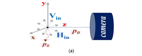 An image obtained using a camera includes both the vertically (Vin) and horizontally polarized light (Hin) [19,20]. If an image is taken from the camera without a polarization filter, the images corresponding to the vertical (Vin) and horizontal polarization (Hin) are incident on to the camera as shown in Figure 8a [34,35,36].
