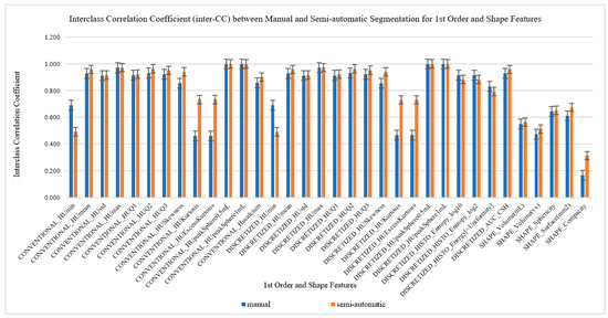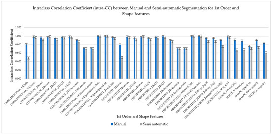3.2. ICC for Manual and Semiautomatic Segmentation for First (1st)-Order and Shape Order Features