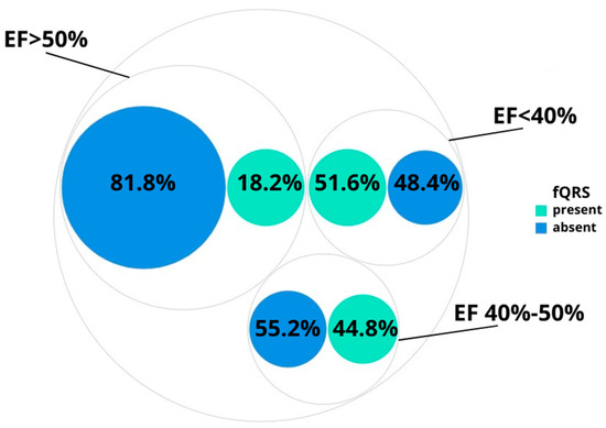 The occurrence of fQRS in the groups under study; EF—ejection fraction, fQRS—fragmented QRS complex.
