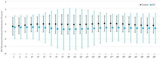 Comparison of the right ventricular 24-segment fractional shortening between the Control group and the GD group.