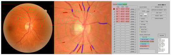 - Wong, T.Y.; Knudtson, M.D.; Klein, R.; Klein, B.E.; Meuer, S.M.; Hubbard, L.D. Computer-assisted measurement of retinal vessel diameters in the Beaver Dam Eye Study: Methodology, correlation between eyes, and effect of refractive errors. Ophthalmology 2004, 111, 1183–1190. [Google Scholar] [CrossRef]