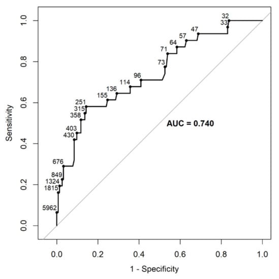 NT-proBNP venous blood samples were collected into tubes containing separating gel and analyzed within eight hours. The NT-proBNP concentrations were quantified using the validated immunoassay (Elecsys® proBNP Cobas e 602 analyzer, Roche Diagnostics, Indianapolis, IN, USA) []. The test principle was a sandwich immunoassay with total duration of 18 min. On first incubation with antigen in the sample, a biotinylated monoclonal NT-proBNP-specific antibody and a monoclonal NT-proBNP-specific antibody labeled with a ruthenium complex form a sandwich complex. On second incubation, after the addition of streptavidin-coated microparticles, the complex becomes bound to the solid phase via interaction of biotin and streptavidin. The reaction mixture is aspirated into the measuring cell where the microparticles are magnetically captured onto the surface of the electrode. Application of a voltage to the electrode then induces chemiluminescent emission, which is measured by a photomultiplier. According to the literature, an optimal strategy for diagnosing and assessing the prognosis of acute HF comprises three cut-off points: 450, 900, and 1800 pg/mL, for ages < 50, 50–75, and >75 years, respectively. This method yielded 90% sensitivity and 84% specificity [].