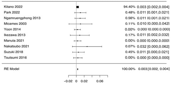 Pooled analysis of needle tract seeding rate in patients who underwent EUS-guided tissue acquisition. Pooled rate of needle tract seeding was 0.3% (95% CI 0.2–0.4%), with no evidence of heterogeneity (I2 = 0%).