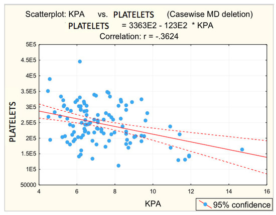 Correlation platelets—fibrosis. (E2 = 102, * = multiplication, -.3624 = −0.3624).