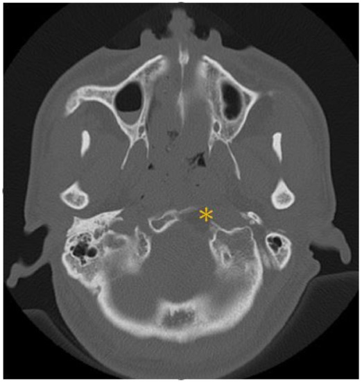 Post-operative CT scan disclosed a well-decompressed hypoglossal canal (asterisk).