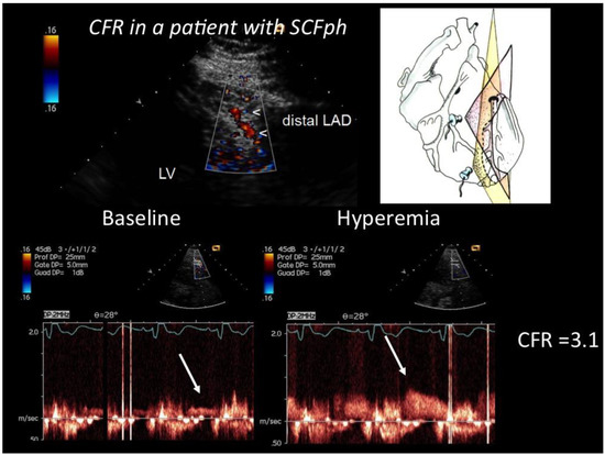 Coronary flow reserve. An example of how CFR was performed by E-Doppler TTE in a subject with SCFph is shown (Figure 2).