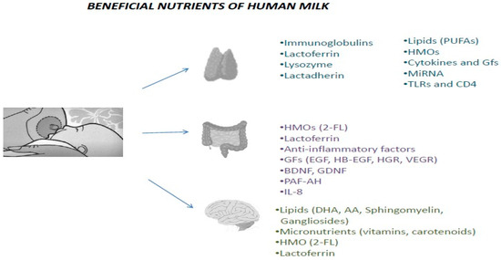 Breastfeeding is the best nutrition for infants, especially for very preterm ones, since maternal milk is associated with a decreased risk for neonatal sepsis and NEC [10]. Human breast milk (HBM) factors such as immunoglobulins, lactoferrin, lysozyme, oligosaccharides, fatty acids, growth factors and anti-inflammatory factors are only some of the valuable components of HBM that induce the growth and development of the newborn organism.