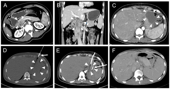 - Liu, T.; Sun, S.; Gao, H.; Gao, Y.; Xu, Q.; Liu, X.; Miao, Y.; Wei, J. CT-guided percutaneous catheter drainage of pancreatic postoperative collections. Minim. Invasive Allied Technol. 2020, 29, 269–274. [Google Scholar] [CrossRef]