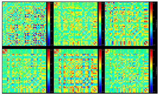 A possible problem is the number of windowed FNC correlations used by the dynamic method for extracting state by reducing the number of FNC correlation windows to a few clusters. This process can be done with different methods, such as k-mean, ICA, and PCA. We used k-mean clustering to extract six different states from all extracted windows. Dynamic connectivity of six different states extracted with k-mean clustering is shown in Figure 4.