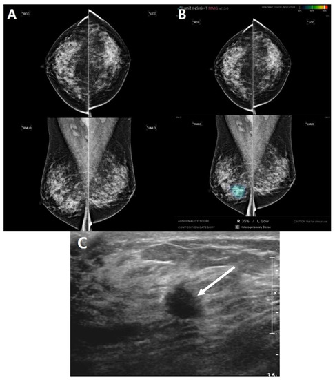 - Lian, J.; Li, K. A review of breast density implications and breast cancer screening. Clin. Breast Cancer 2020, 20, 283–290. [Google Scholar] [CrossRef] [PubMed]