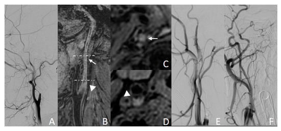 - Debrey, S.M.; Yu, H.; Lynch, J.K.; Lövblad, K.O.; Wright, V.L.; Janket, S.J.D.; Baird, A.E. Diagnostic accuracy of magnetic resonance angiography for internal carotid artery disease: A systematic review and meta-analysis. Stroke 2008, 39, 2237–2248. [Google Scholar] [CrossRef] [PubMed]