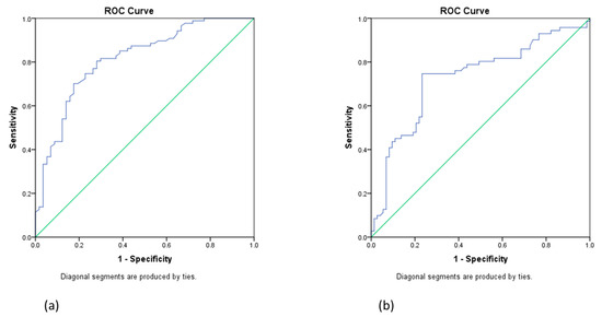 The statistical analysis was conducted using SPSS, version 23.0 for Windows, and all eligible patients were included. The oncologic outcome was calculated using the Kaplan–Meier method to determine PFS, defined as the time from cancer diagnosis to the disease progression on imaging or death from any cause, and median overall survival (OS) defined as the time from diagnosis to death of any cause. The univariate analysis using the log-rank test was used for analyzing the influence of different factors regarding the oncologic outcome, and a multivariate analysis was used according to the stepwise Cox proportional hazards model to identify independent prognostic factors and estimate their effect on the time to disease progression and overall survival. The p value was considered statistically significant if it was <0.05. Receiver operating characteristics (ROC) curves were used to measure the model’s efficacy, determine a prognostic cut-off value, and estimate the sensibility and specificity of the method. An area under the curve (AUC) closer to 1 is considered an efficient model and AUC values >0.6 validate the model.
