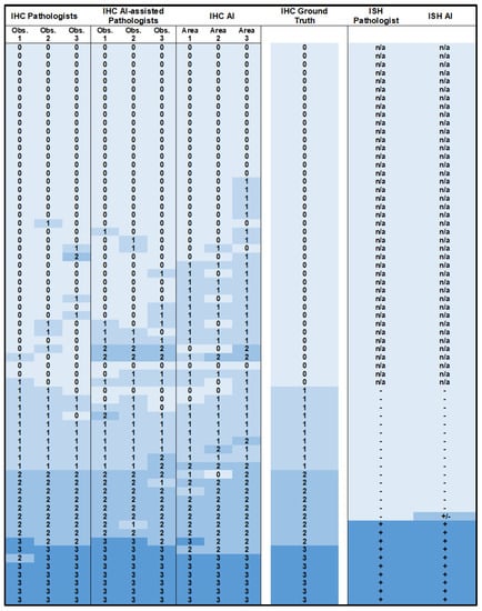 - Turashvili, G.; Leung, S.; Turbin, D.; Montgomery, K.; Gilks, B.; West, R.; Carrier, M.; Huntsman, D.; Aparicio, S. Inter-observer reproducibility of HER2 immunohistochemical assessment and concordance with fluorescent in situhybridization (FISH): Pathologist assessment compared to quantitative image analysis. BMC Cancer 2009, 9, 165. [Google Scholar] [CrossRef] [PubMed]