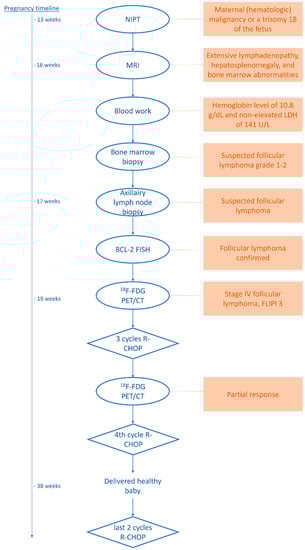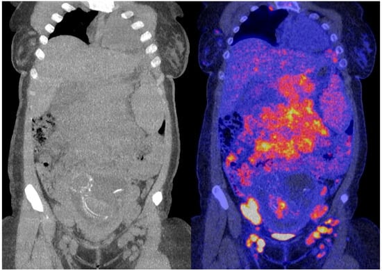 - Calais, J.; Hapdey, S.; Tilly, H.; Vera, P.; Chastan, M. Hodgkin’s Disease Staging by FDG PET/CT in a Pregnant Woman. Nucl. Med. Mol. Imaging 2014, 48, 244–246. [Google Scholar] [CrossRef]