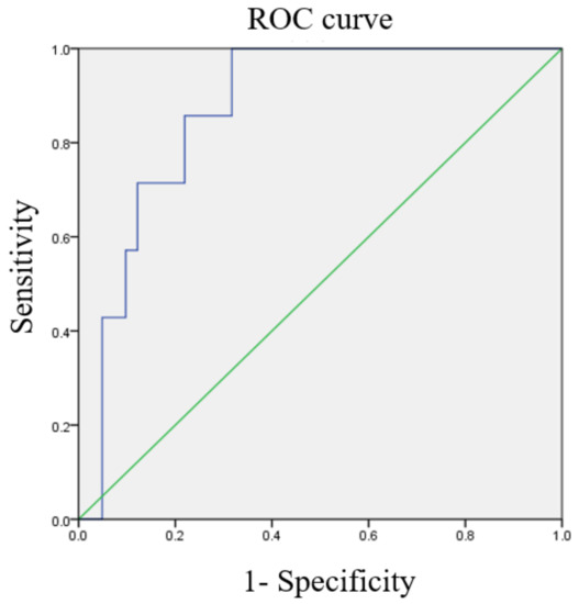 The receiver operating characteristic (ROC) curve of the neutrophil/lymphocyte ratio predicts cancer death (area under the curve [AUC] = 0.871).