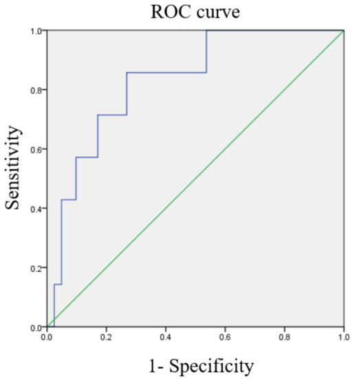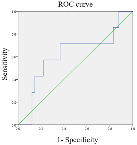 ROC curves for the optimal cutoff values of NLR, MLR, and PLR are shown in Figure 2, Figure 3 and Figure 4. The cutoff value of NLR was 3.01 (AUC = 0.871). As for MLR and PLR, the cutoff value was 0.234 (AUC = 0.829) and 154.33 (AUC = 0.617), respectively.