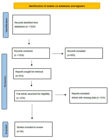 Two authors independently extracted the data from the eligible study. Fifty-eight main studies were identified, as reported in Figure 2. Discrepancies were resolved by discussion between two authors. From each study, we extracted the following data: first author, publication year, design of the study (retrospective or prospective, single center or multicenter), study population, aim of the study, imaging modality, AI modality, test data set, and training-validation dataset. Papers without solid statistical analysis were excluded from the study. Then, we performed a descriptive analysis of these studies.