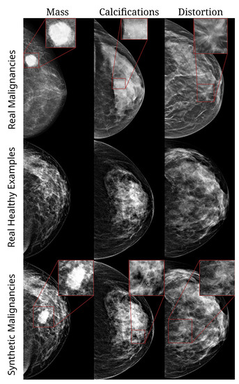 - Wu, E.; Wu, K.; Lotter, W. Synthesizing lesions using contextual GANs improves breast cancer classification on mammograms. arXiv 2020, arXiv:2006.00086. [Google Scholar]