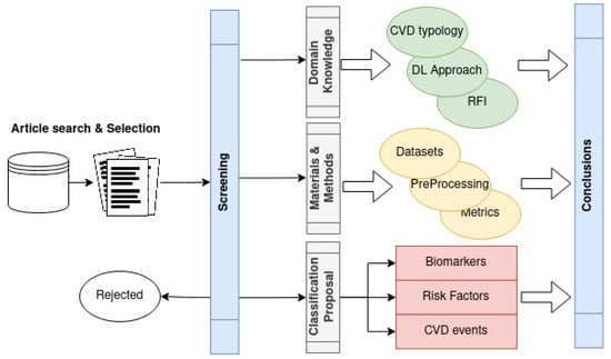 The cardiovascular damage diagnosis approach is different in each article, varying not only in the clinical analysis approach but also in the deep learning techniques, datasets, strategies, etc. Therefore, we propose a classification of the articles in the following subsets: