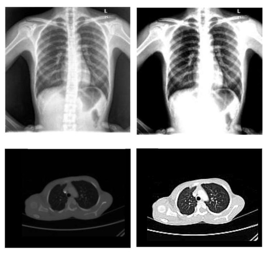 Figure 2. Sample X-ray and CT images before and after the preprocessing steps.