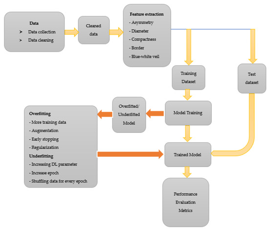 Several variants of the dataset were generated using positional and color augmentation techniques while preserving the integrity of the original data. These techniques include shear, rotation, zoom, brightness, shift, and flip. Our history of successfully enhancing imaging data informed the decision to choose a specific range of choices. The shear technique distorts the image to assist in the creation or correction of perception angles and provides a sort of image stretching. In contrast to shear, rotation does not distort an image’s proportions. Rather, rotation changes the angles of the data that appear in the dataset during training. Zoom helps to add new pixels to the image, thereby creating several others. The zero-phase component analysis (ZCA) whitening is a transforming method that decorrelates the image pixel. When utilizing CNN, the spatial arrangement of the pixels must be preserved, and the ZCA does just that. Shifting an image is a geometric transformation that repositions all of its constituent parts relative to one another. The model can be given more variation by shifting the images around to modify the position of the things in the image. This often results in a more generalized model. Flipping allows for the flipping of images in the left–right and up–down directions.