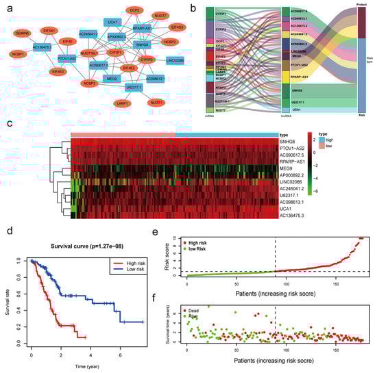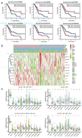 3.3. Correlation between Differently Expressed m7G-Related lncRNAs and Clinical Factors