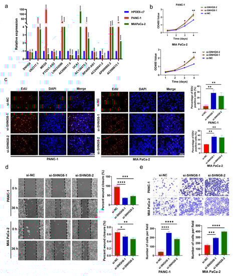 3.9. In Vitro Biological Function of SHNG8 in PC Cells
