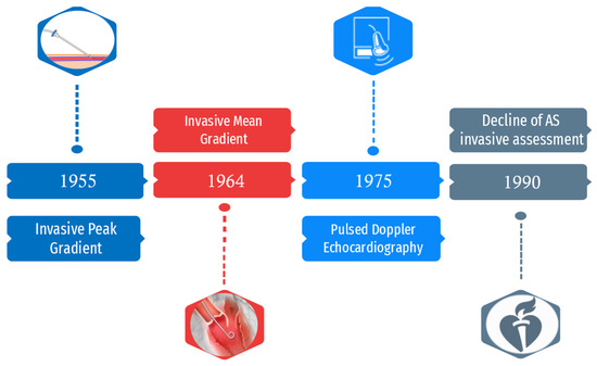 Over the last several decades, advances in technology and imaging have expanded the range of tools for diagnosing AS. In the past, around 70 years ago, AS was primarily recognized through clinical and phonometric assessment. However, there was a growing consensus on the utility of anticipating the identification of patients suitable for surgery to have a beneficial impact on the prognosis. It was clear that this could not be adequately achieved through clinical examination alone, and objective methods to assess the severity of valve disease were urgently needed. Several physicians proposed measuring the pressure gradient across the aortic valve to facilitate decisions about surgical intervention. In 1950, Limon Lason et al. measured left ventricular and aortic pressures in 17 patients using a catheter that was surgically introduced via the radial artery. The introduction of the percutaneous technique to perform heart catheterization by Seldinger, in 1953, prompted the development of new methods to assess the presence and severity of AS [2].