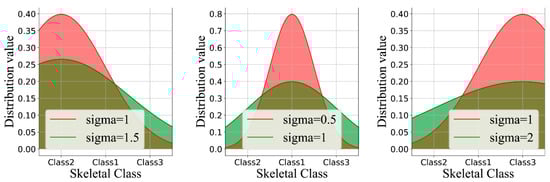 Table 1, there are actual borderline cases between the three groups, as opposed to decision boundaries produced by the model classification. Currently, there are no widely acknowledged clinical criteria for the classification of borderline cases. Therefore, it is acceptable to determine whether these belong to any classification for a borderline case in skeletal Classes I and II. Hence, label confusion is an inevitable occurrence with a borderline case. Instead of using one-hot labels for borderline circumstances, we applied a label distribution learning technique to address this issue.