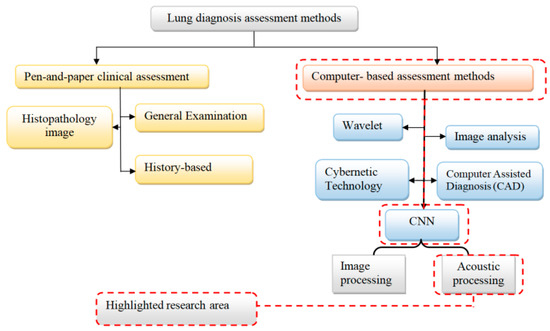 Classification of lung diagnosis methods highlights the focused area in this work.