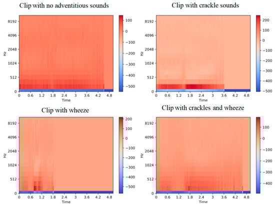 - Bahoura, M. Pattern recognition methods applied to respiratory sounds classification into normal and wheeze classes. Comput. Biol. Med. 2009, 89, 824–843. [Google Scholar] [CrossRef] [PubMed]