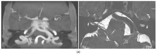 - Han, J.; Wang, T.; Xie, Y.; Cao, D.; Kang, Z.; Song, X. Successive occurrence of vertebrobasilar dolichectasia induced trigeminal neuralgia, vestibular paroxysmia and hemifacial spasm: A case report. Medicine 2018, 97, 25–31. [Google Scholar] [CrossRef]