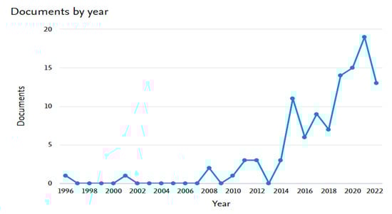 Figure 2 represents the number of documents about cervical cancer per year. Obviously, interest in this topic started in 1996 with only one paper, and no production from 1997 to 2001 appeared in other documents. The settlement of ignorance was shown from 2002 to 2007, and two documents appeared in 2008. The steady increasing pattern appeared from 2009 to 2011. The sharp growth appeared from 2009 to 2015. In 2015–2018, there were swings between increasing and decreasing, but the average number was around eight documents per year. The total number sharply increased from 2018 to 2022 to be the mean of around 15 documents per year as well. That reflects people’s consideration of the danger of cervical cancer as well as the significance of research to build a solid understanding of the nature of the disease and the tools to overcome or reduce its impacts on women.