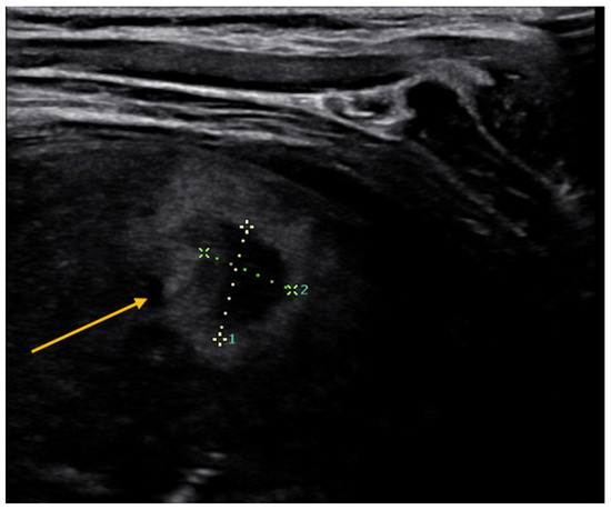 The diagnosis of lung abscess often requires more extensive instrumental investigations than chest X-rays. Recently, lung ultrasound has demonstrated its role in the diagnosis of this condition. On ultrasound, the abscess is seen as a well-demarcated capsular structure surrounding a hypoechoic core non-vascularized and follows its evolution over time [41] (Figure 4). In this way, additional investigations, such as computed tomography (CT), can be avoided with significant radiation protection benefits, especially in the pediatric age group. Furthermore, through convex-probe endobronchial ultrasound, it is possible to guide procedures, such as transbronchial needle aspiration, and to help physicians with differential diagnosis and treatment choices [42].