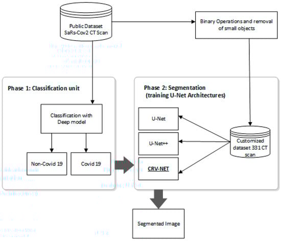 - The proposed CRV-NET architecture is the modified version of generic U-Net architecture that has included the weight pruning approach on both encoder and decoder sides for robust COVID-19 detection using limited data sources of lung CT scan images.