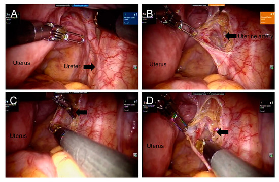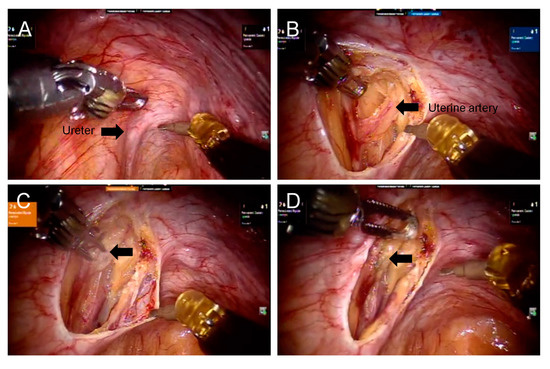 - Kobayashi, E.; Nagase, T.; Fujiwara, K.; Hada, T.; Ota, Y.; Takaki, Y.; Kanao, H.; Andou, M. Total laparoscopic hysterectomy in 1253 patients using an early ureteral identification technique. J. Obstet. Gynaecol. Res. 2012, 38, 1194–1200. [Google Scholar] [CrossRef]